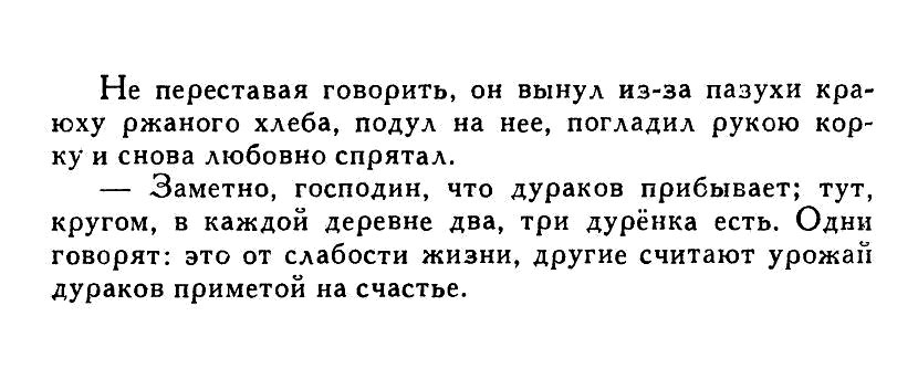 "Посетители монастыря помещаются в гостинице. Есть особенный приют и для нищих, которыми богата эта часть Финляндии. Нищим дозволяется быть на Валааме в течение двух суток и пользоваться трапезой, нарочно приготовляемой в их приюте, а на дорогу дают каждому два куска ржаного хлеба. И для этого-то подаяния стремится за сорок, за пятьдесят верст финляндец в монастырь Валаамский! Летом, лишь очистится путь по озеру, многие десятки челноков ежедневно приносят нищих по бурной пучине к монастырю. Уезжают одни; на место их приехали уже другие. Зимой, лишь станет лед, целые стаи их пускаются пешком в трудное путешествие, несмотря ни на лютость мороза, ни на дальность пути. Идут полуобнаженные по льду! Идут и старцы увечные, и дети, и женщины с грудными младенцами. Нередко находят в ледяной степи замерзшие трупы этих бедняков, думавших уйти от голода, убитых морозом."